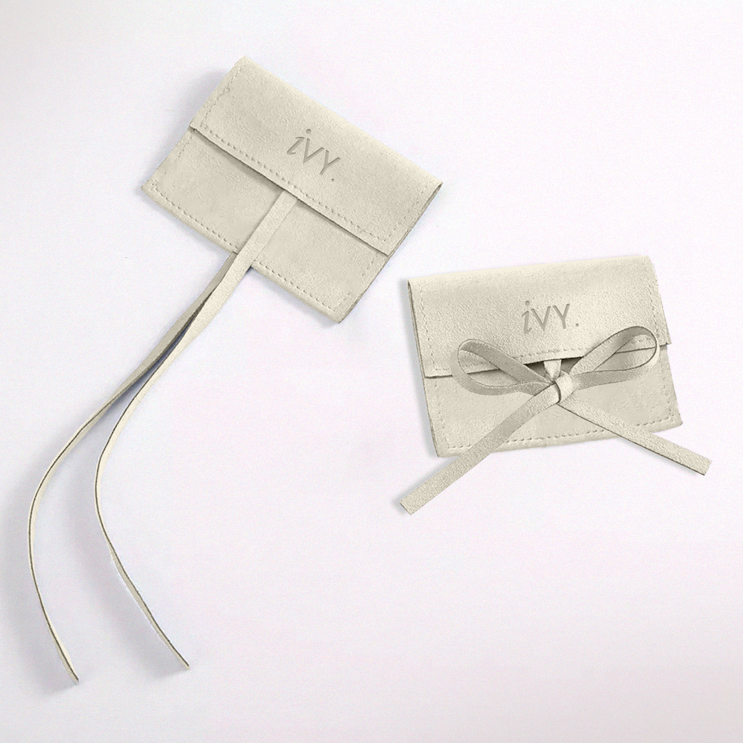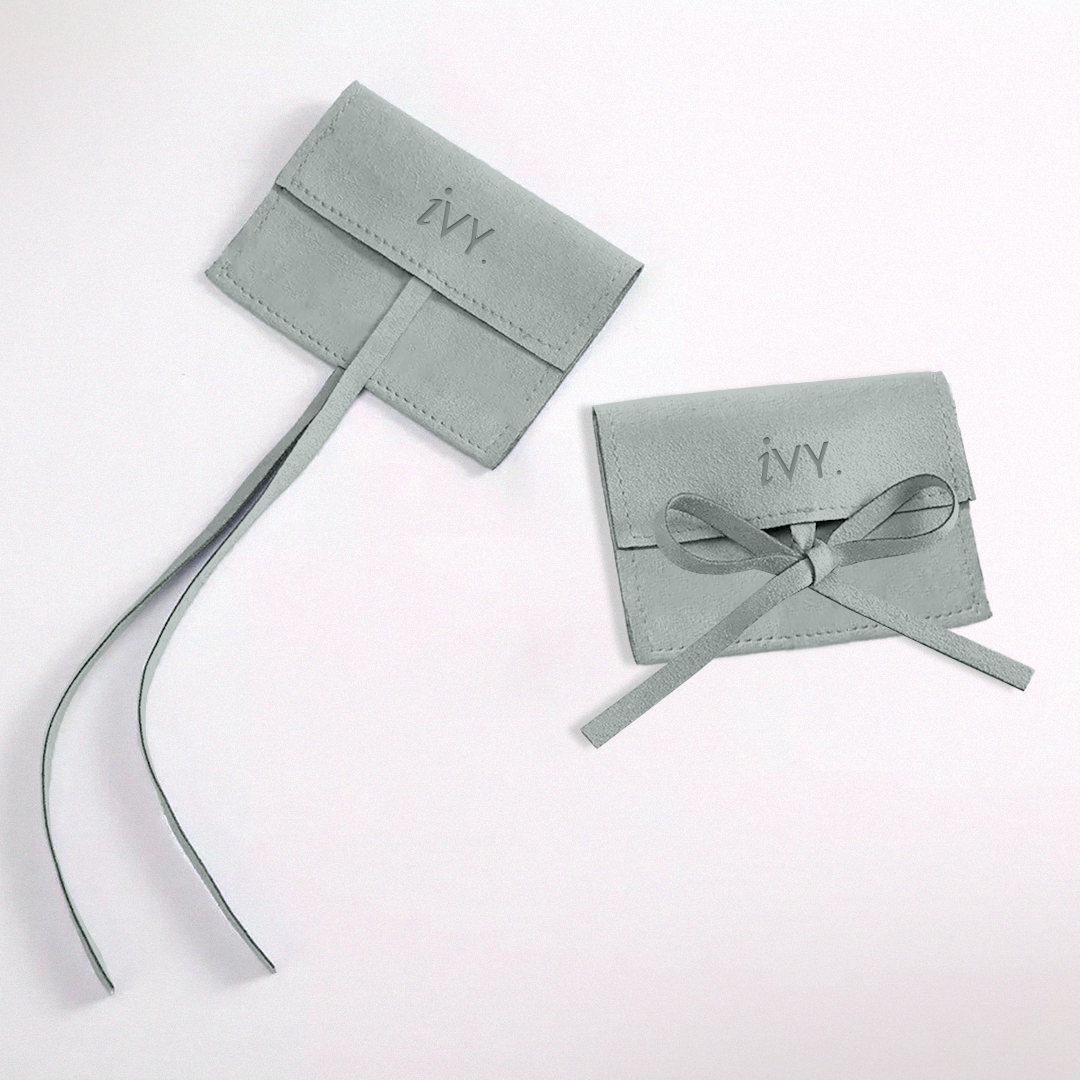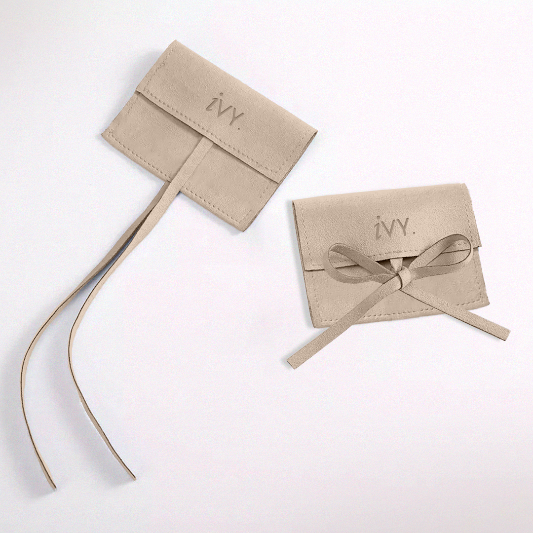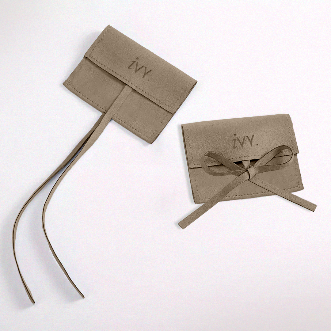 Sobre de gamuza con tiras y ranura para cerrar.